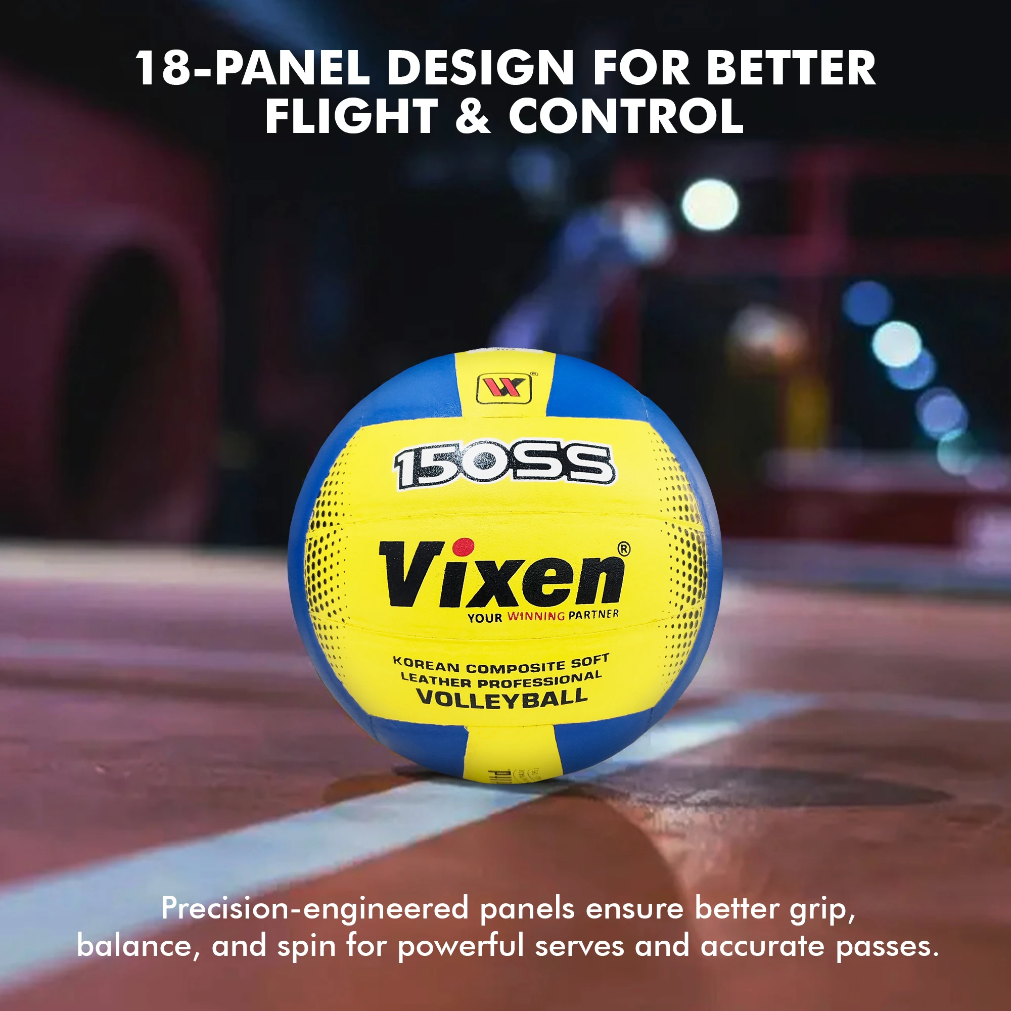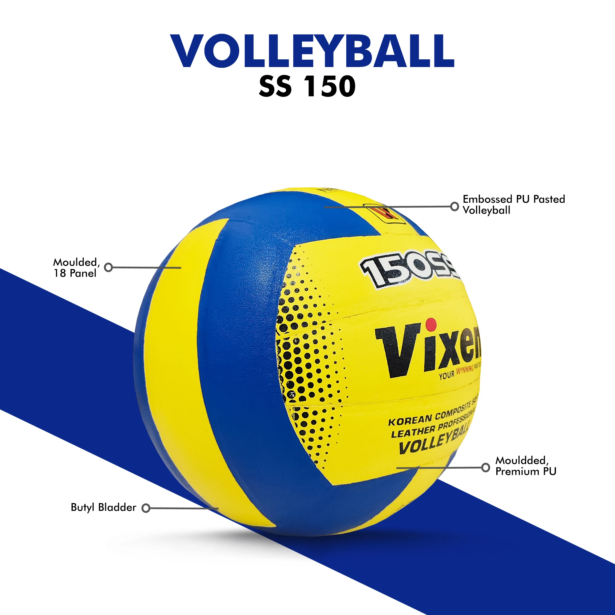 Vixen Volleyball SS-150 | Moulded Embossed PU Pasted Ball | Premium PU Construction with Butyl Bladder | High Air Retention & Consistent Bounce | Ideal for Indoor & Outdoor Play
